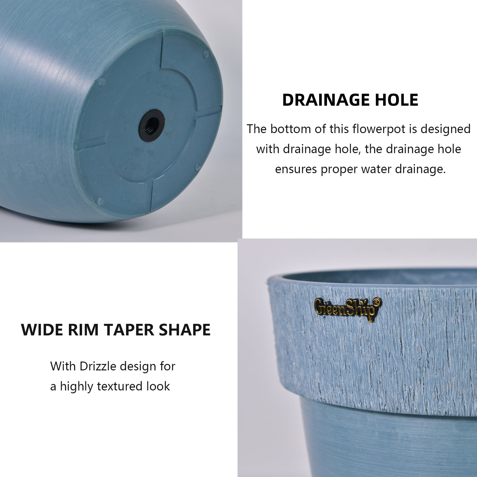 Drainage Hole: The bottom of the flowerpot is designed with drainage holes to ensure smooth drainage.
