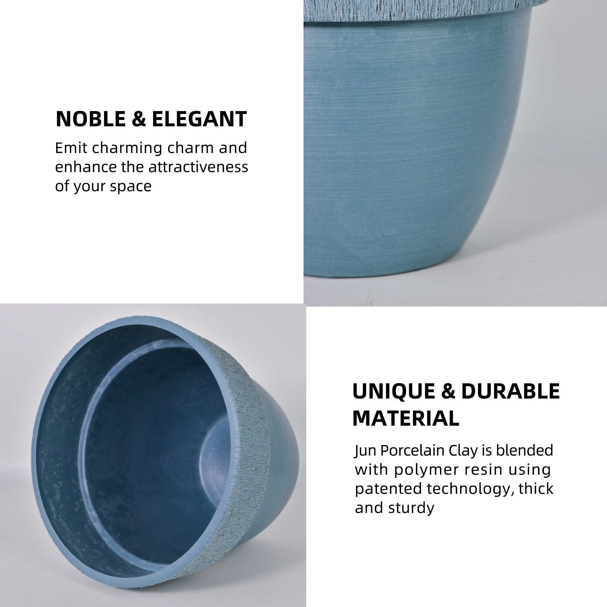 UV Protected: Our patented clay and resin formula makes these pots UV Color Fast so they won’t fade in sunlight like traditional pots.