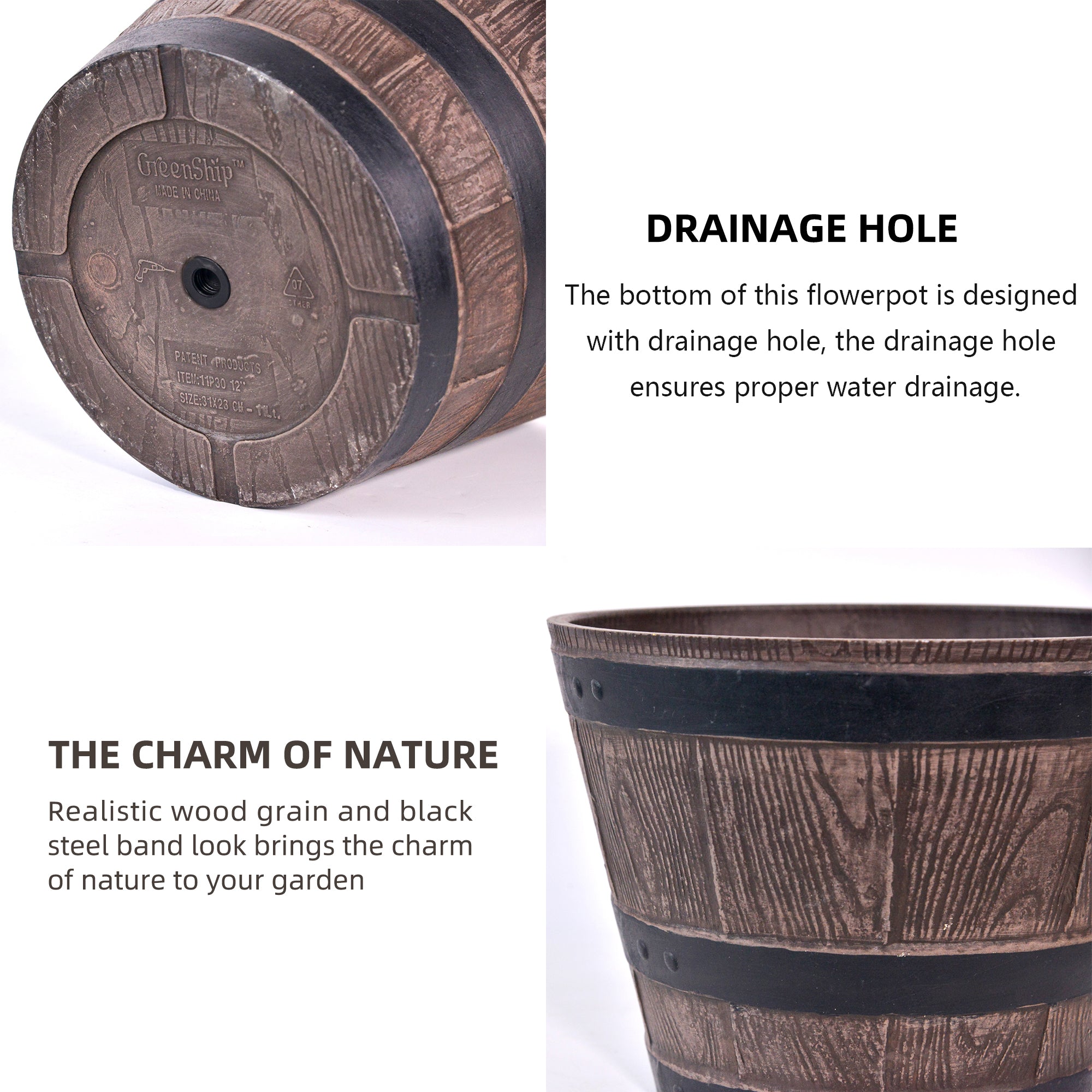 Classic Design: the whiskey barrel appearance design is unique and has a classical charm, adding features to your garden or courtyard.