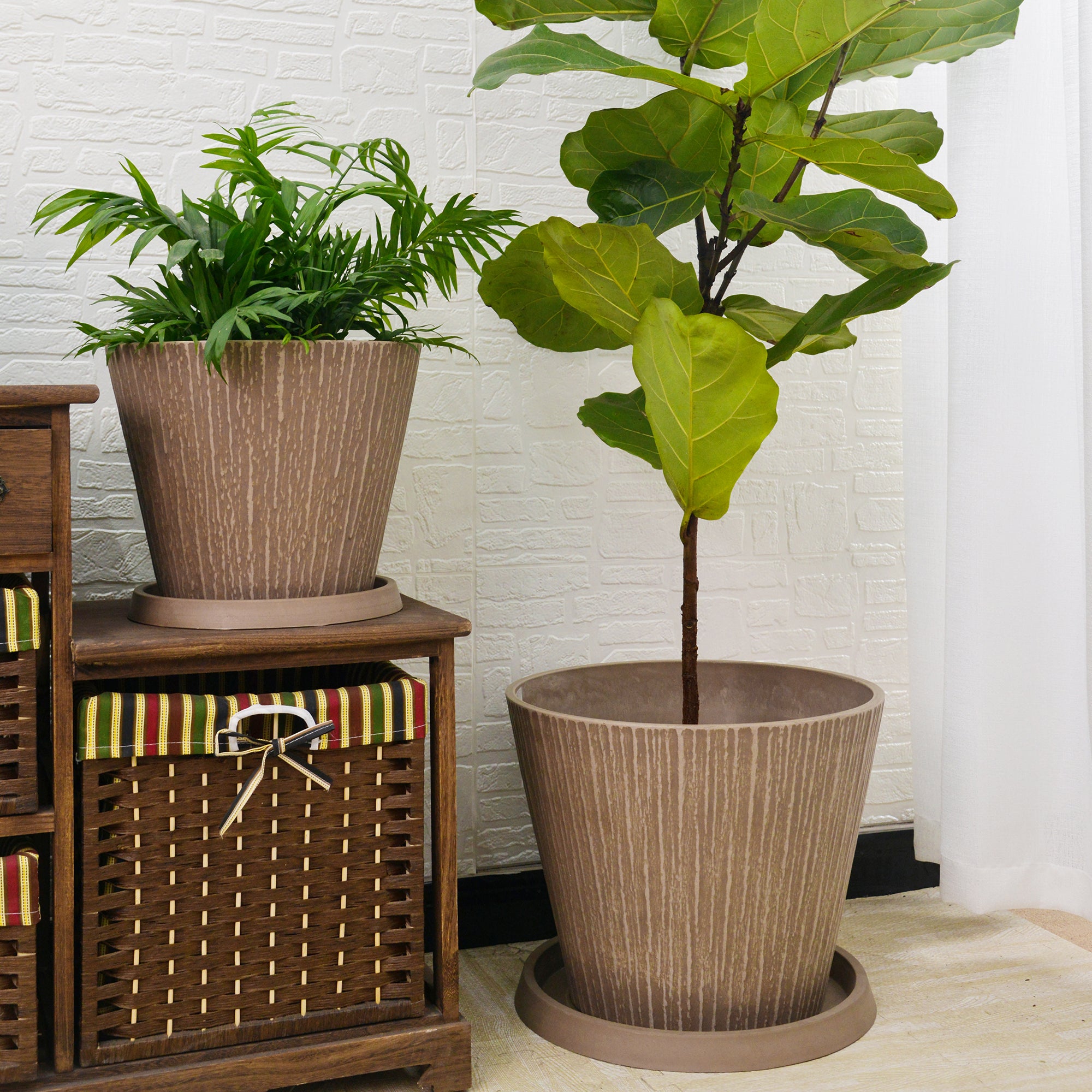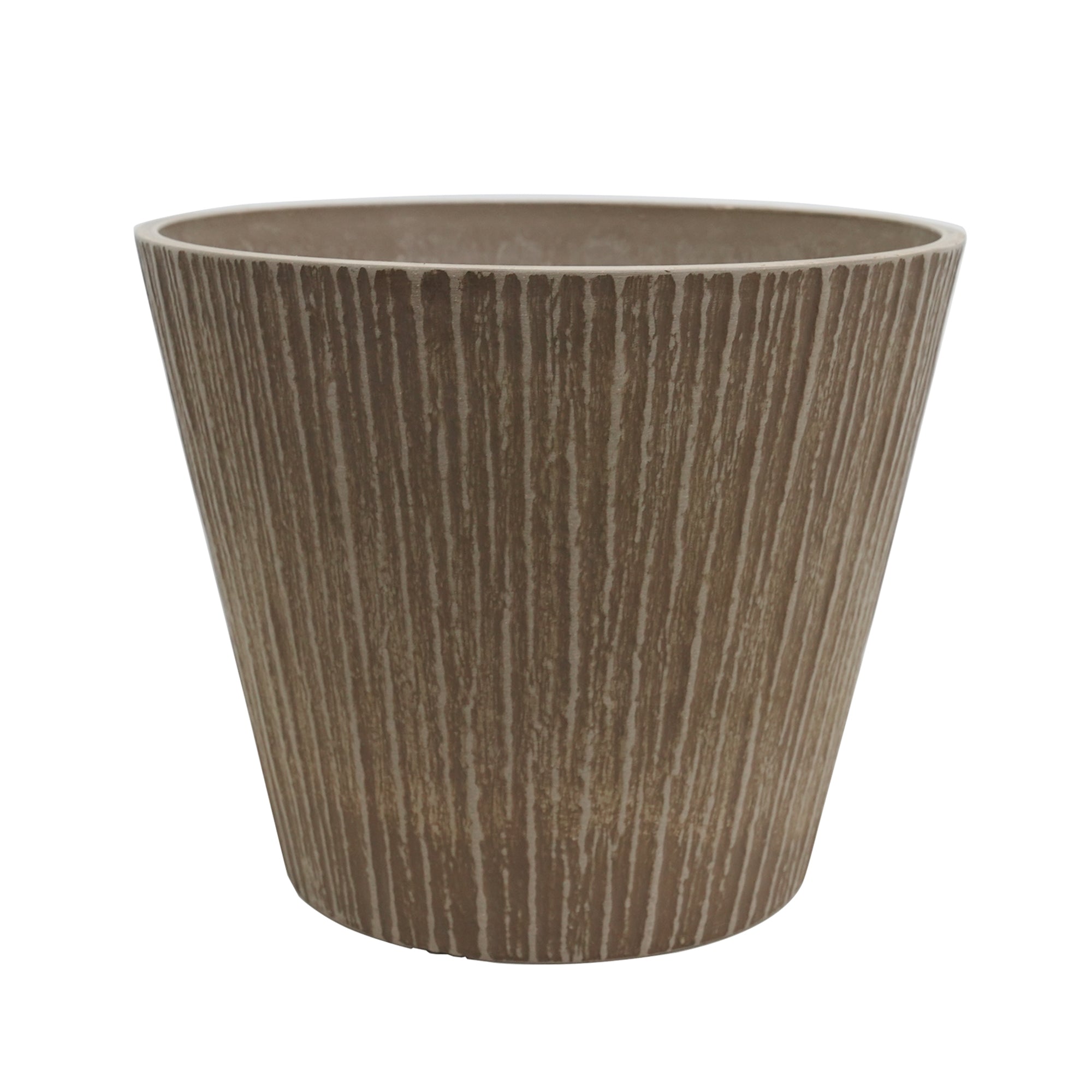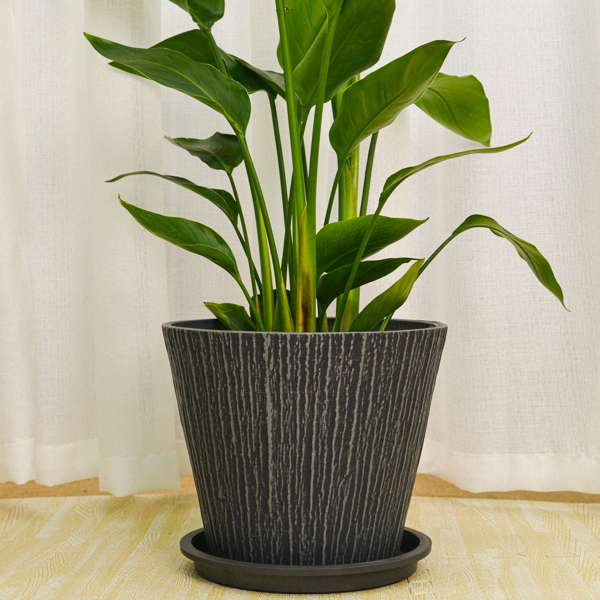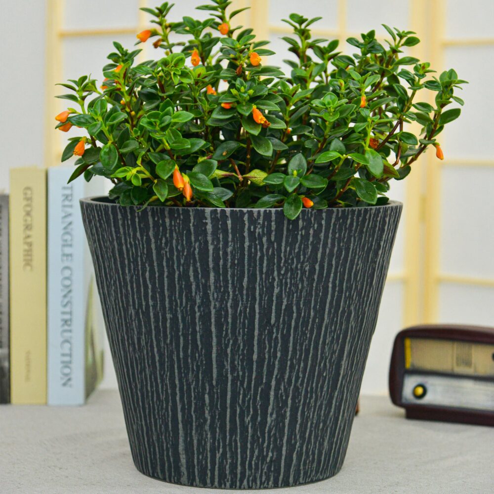 The GreenShip large planter (12-inch and 16-inch) is made from a durable blend of recycled resin and clay powder, offering break resistance and weather resilience. Its stylish textured bark relief design adds a natural, rustic charm to any indoor or outdoor space. UV protected to prevent fading from sunlight, this planter is ideal for both decorative and functional use, with a drainage hole to ensure healthy plant growth. Available in Charcoal, Taupe, and Whitestone, it’s perfect for enhancing your home, patio, porch, or garden with a touch of elegance.