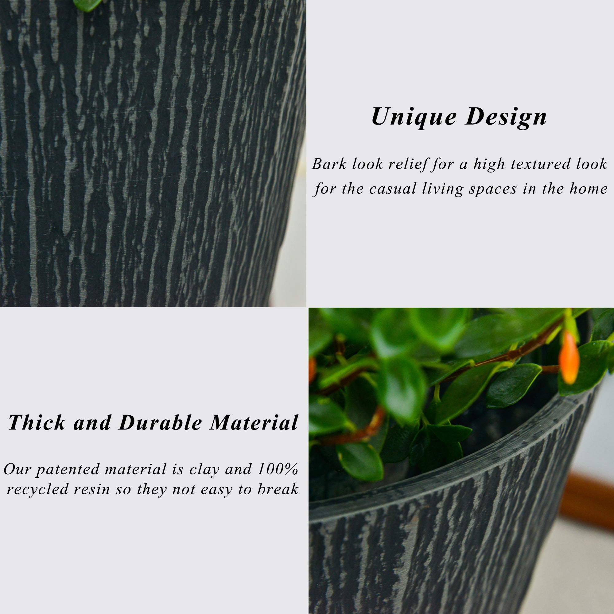 Break Resistant: Our patented material is clay and 100% recycled resin so they not easy to break. Thick and durable material for all types of weathe
