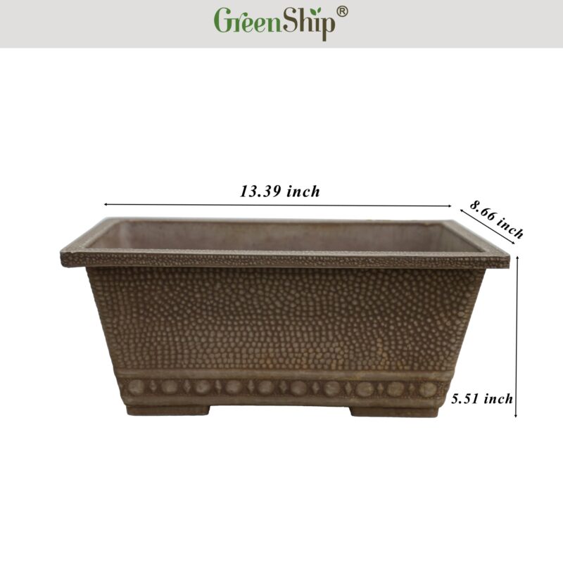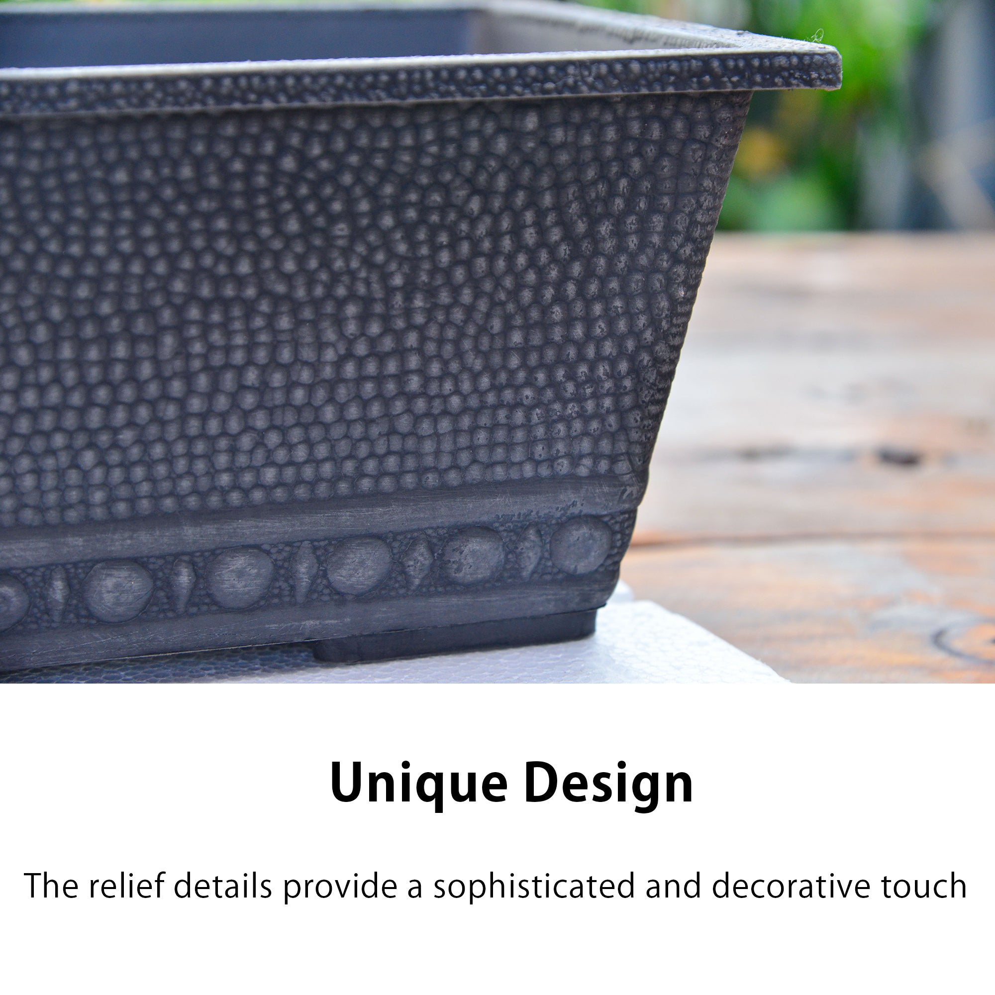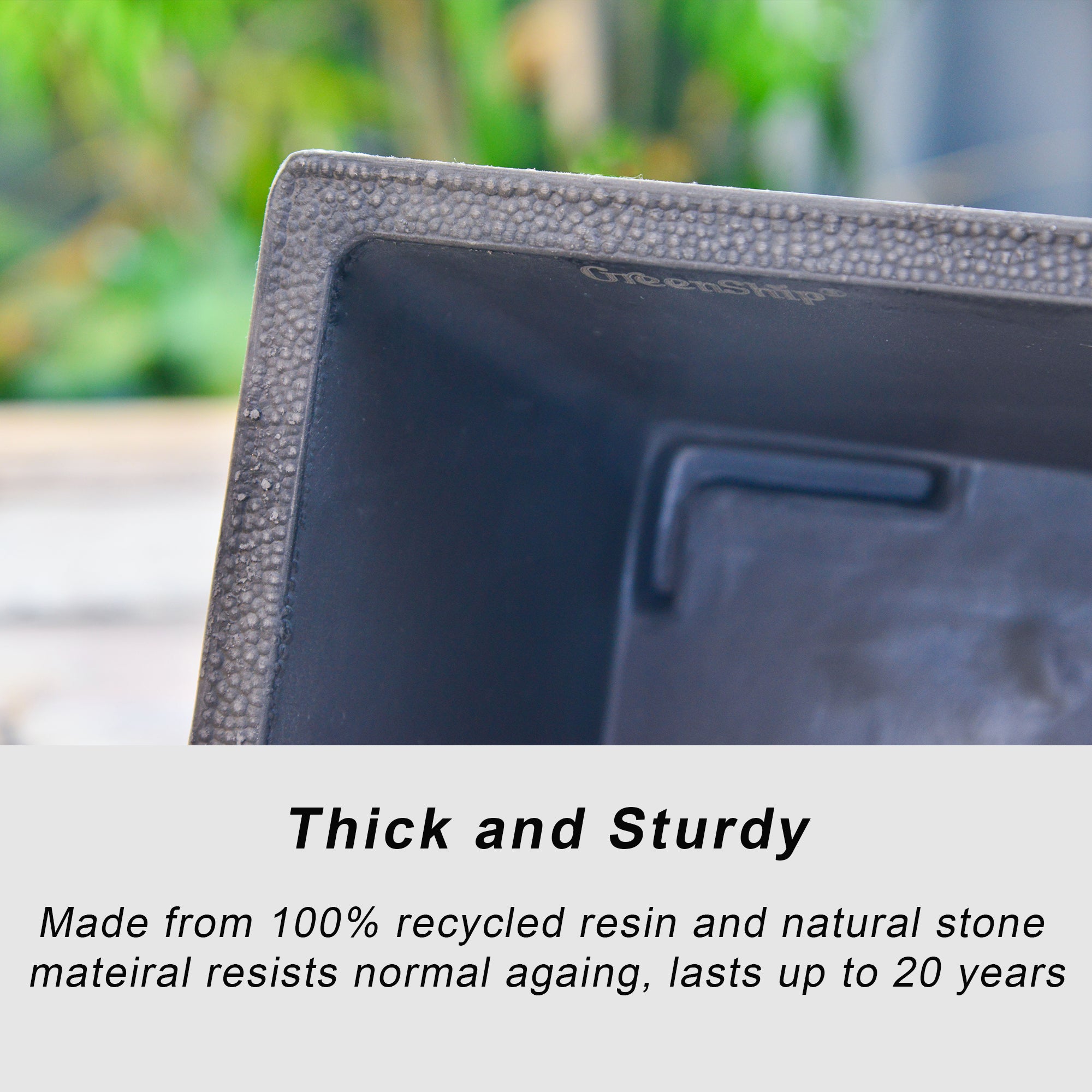 Discover GreenShip’s window box planter, a 13-inch classic designed for both style and durability. Crafted from eco-friendly recycled resin and clay powder, this planter is break-resistant, weatherproof, and UV color-safe, ensuring long-lasting beauty. Perfect for decks, patios, windowsills, or balconies, its ample planting space and drainage hole promote healthy plant growth. Enhance your indoor or outdoor space with this versatile and functional planter, ideal for herbs, flowers, or small greenery.