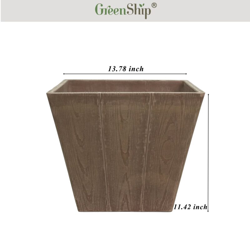 GreenShip’s decorative pots combine durability with style, featuring a unique square design with realistic wood grain planks for a casual yet elegant accent. Made from a blend of recycled resin and clay powder, these pots are sturdy, weather-resistant, and UV color fast, ensuring they won’t fade or break easily. Equipped with a drainage hole for healthy plant growth, they are perfect for both indoor and outdoor spaces. Available in Chocolate, Light Grey, and Taupe, these versatile planters add a decorative touch to your home, patio, or garden.