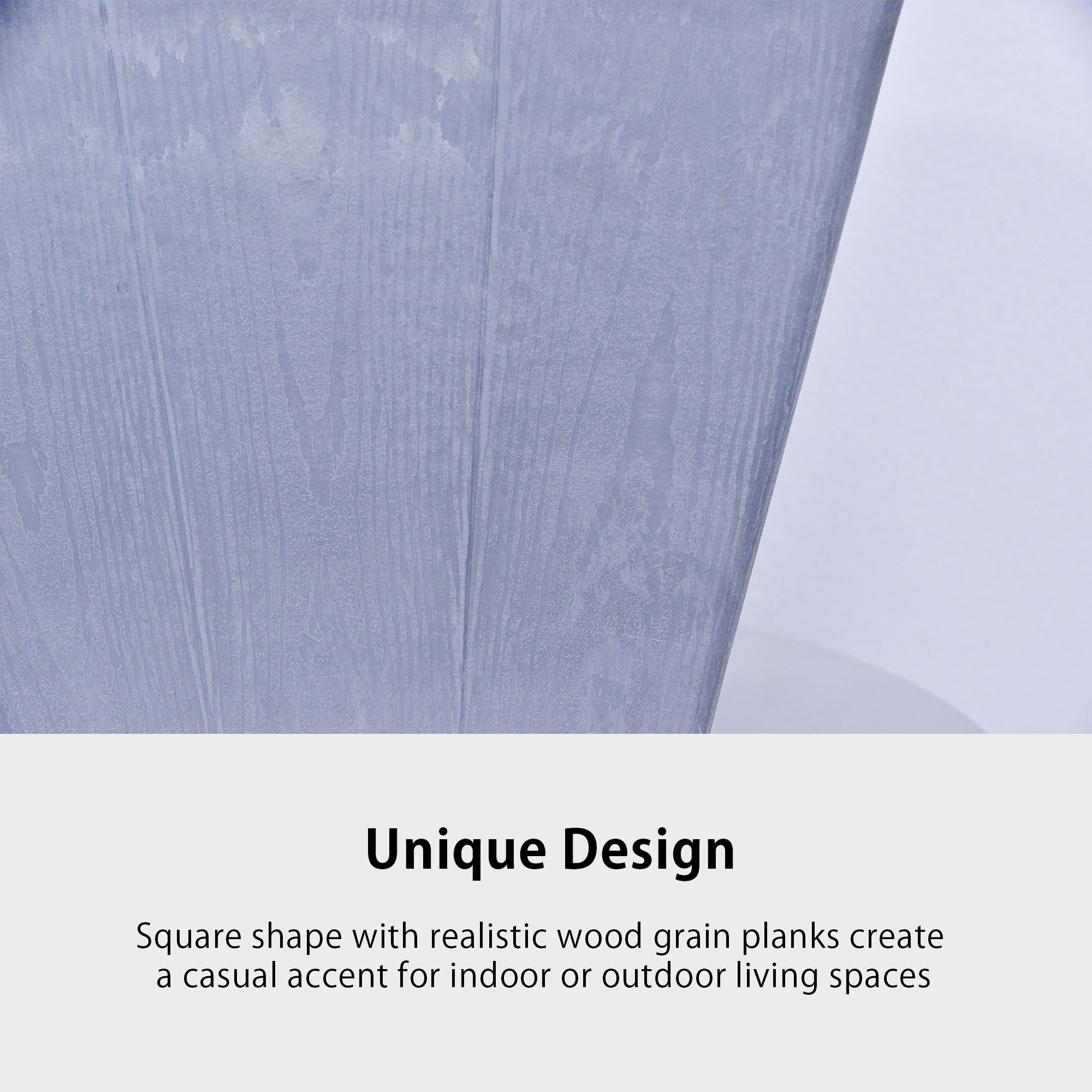 Unique Design: Square shape with realistic wood grain planks create a casual accent for indoor or outdoor living spaces