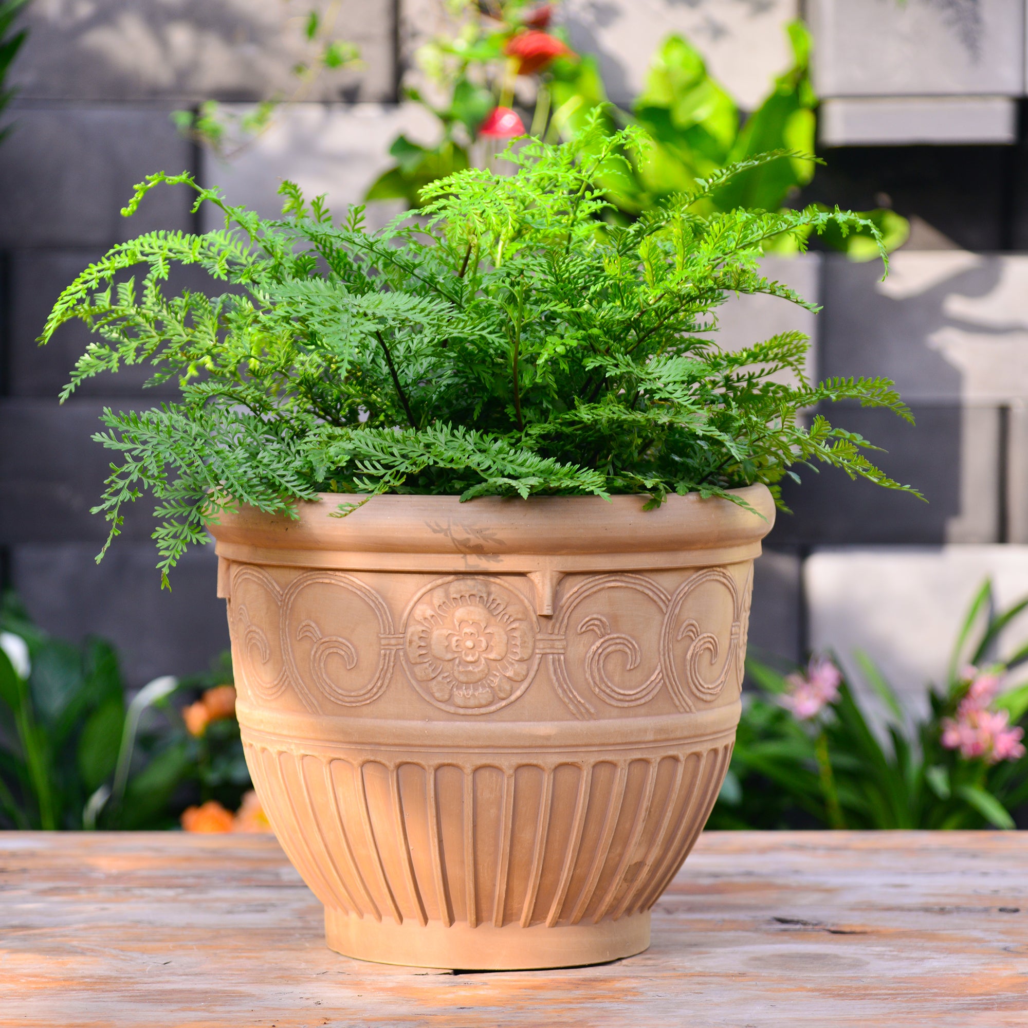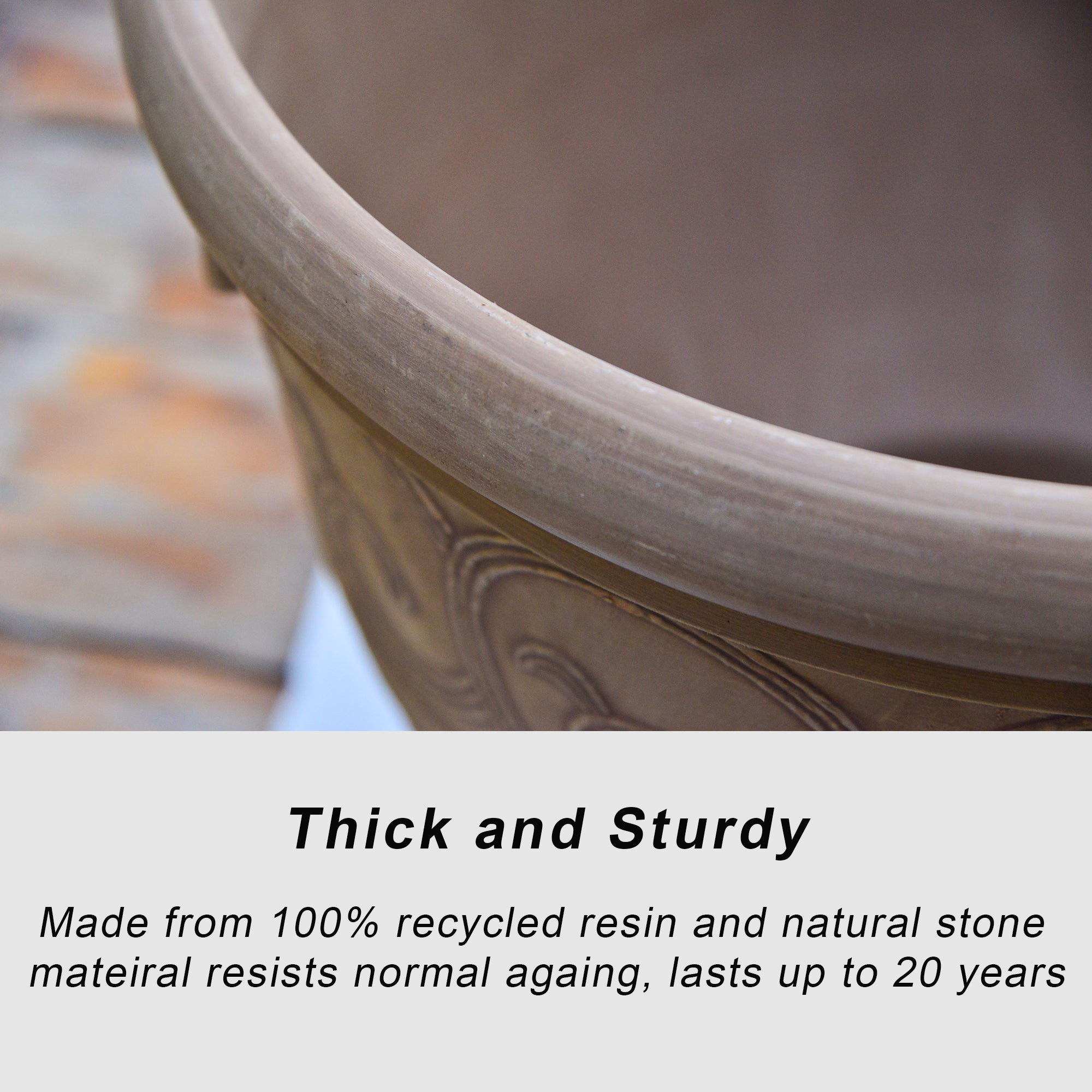16 inch Round Rim Large Planter for Indoor Outdoor, Classic Reliefs Decorative Plant Pots with Drainage Hole