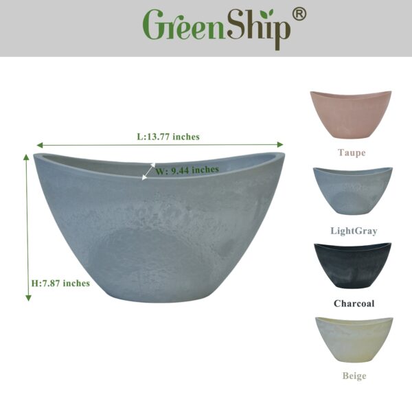 GreenShip’s curved planter features a unique orchid bowl shape with a beautiful CeraSic finish, adding visual interest to any space. Made from a durable blend of recycled resin and clay powder, this planter is break-resistant, weather-resistant, and UV color fast, ensuring long-lasting beauty. With a drainage hole to promote healthy plant growth, it is perfect for both planting and decorative use. Ideal for succulent plants, cacti, and flowers, this curved planter enhances both indoor and outdoor spaces, providing a stylish and functional addition to your home, patio, or garden.