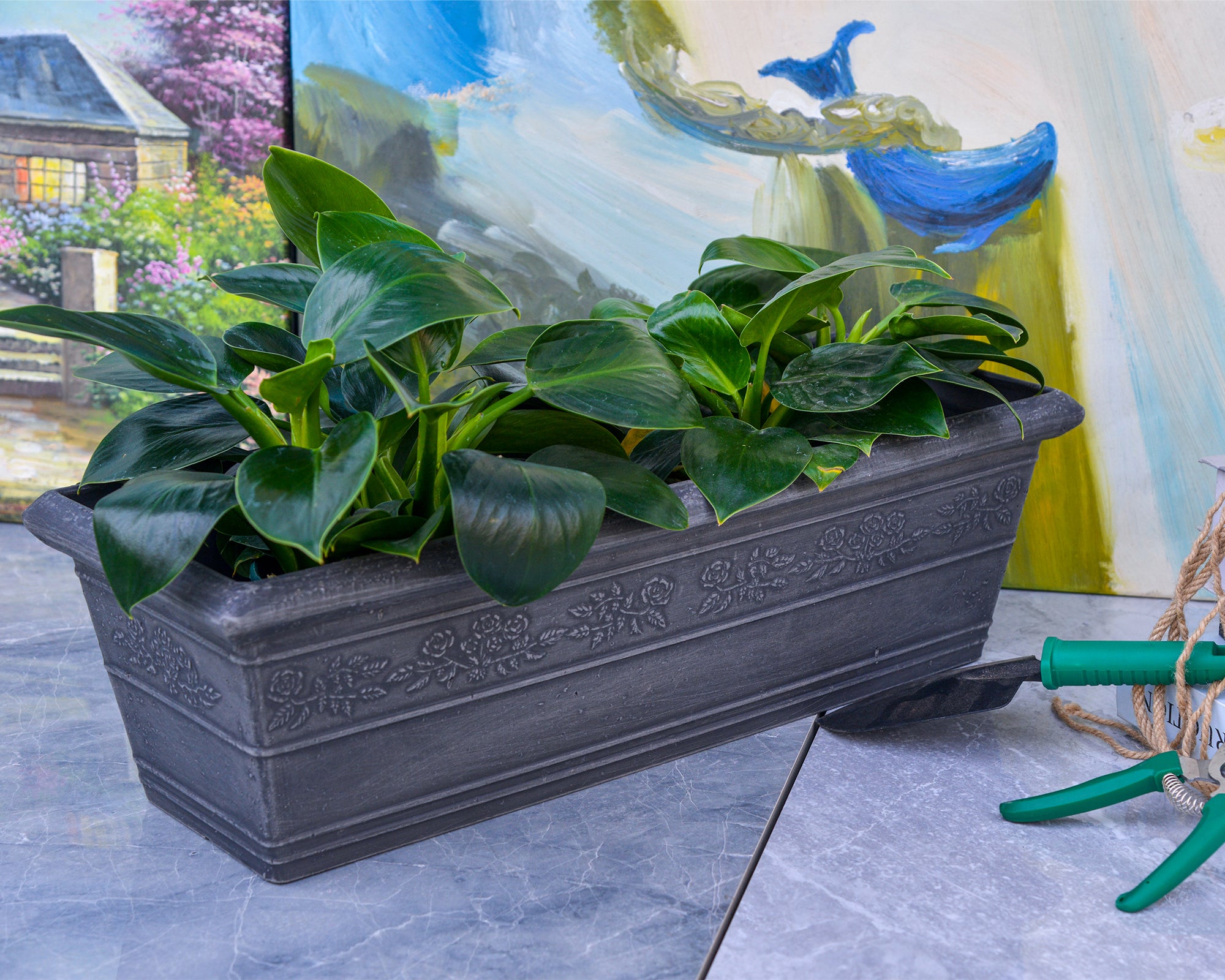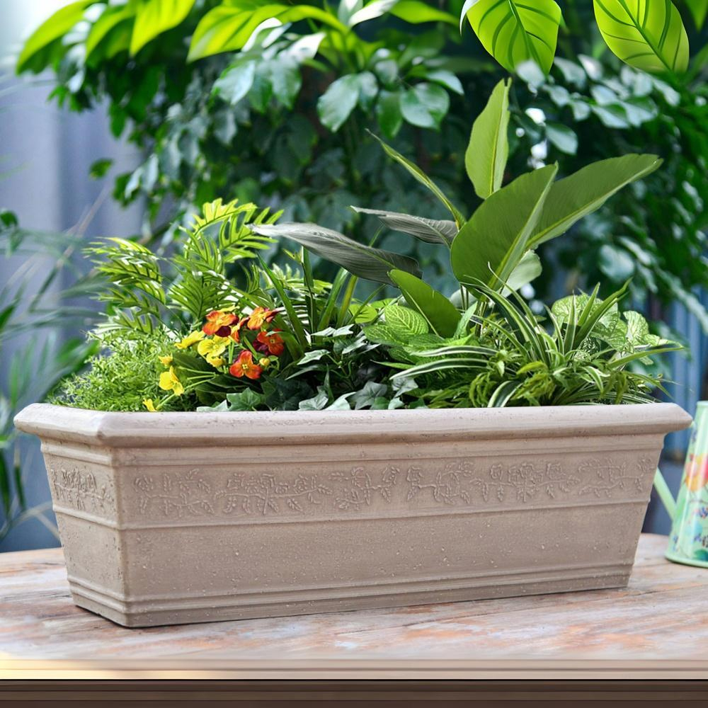 Elegant Design: This classic box and deck planter features a heavy rim and intricate floral embossing for an elegant, timeless look