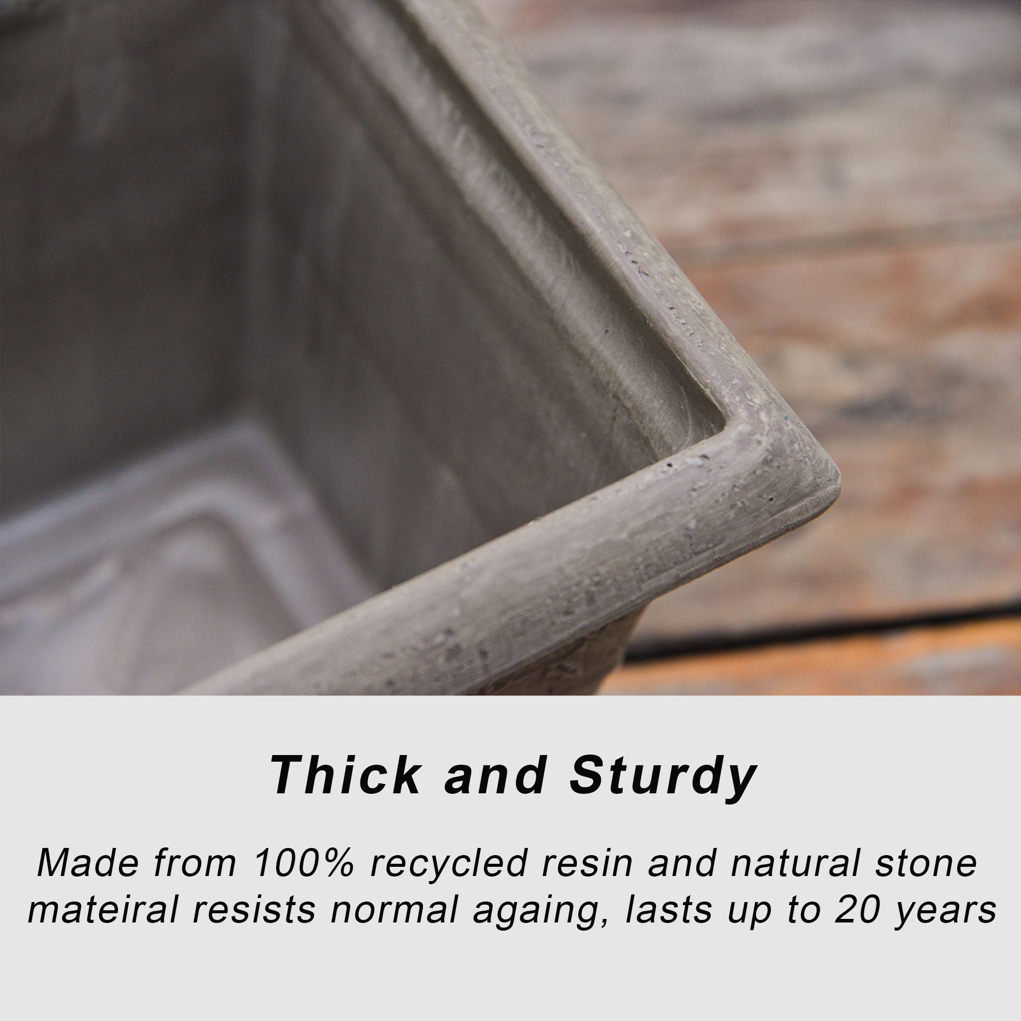 Break Resistant: Our patented material is clay and 100% recycled resin so they not easy to break. Thick and durable material for all types of weather