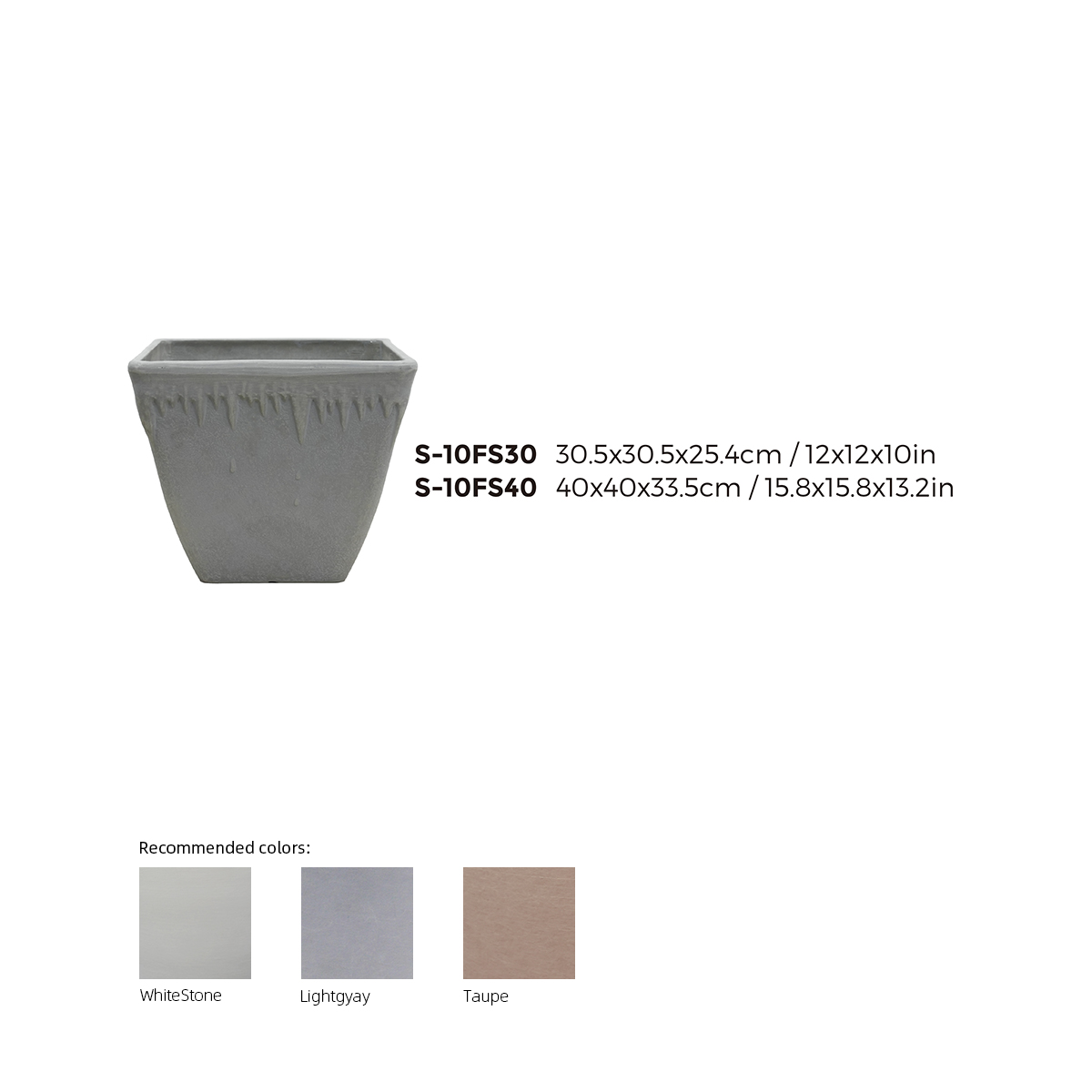 1. World quality manufacturer of flower pot with 30 years experience in production and R & D 2. Two manufacturing facilities, two research institutes and one marketing center 3. 130 patents with 9 world’s only invention patents 4. Our production Line of 3D Printers and mould workshop can meet custom needs 5. Our Composite patented material is eco-friendly, non-toxic 6. naturally looking,sturdy,durable and with a life span up to 20years 7. aging-resistant,anti-UV and weather-resistant 8. Breathable, good for plant growth 9. A rich variety of styles and colors with over 100 new items per year