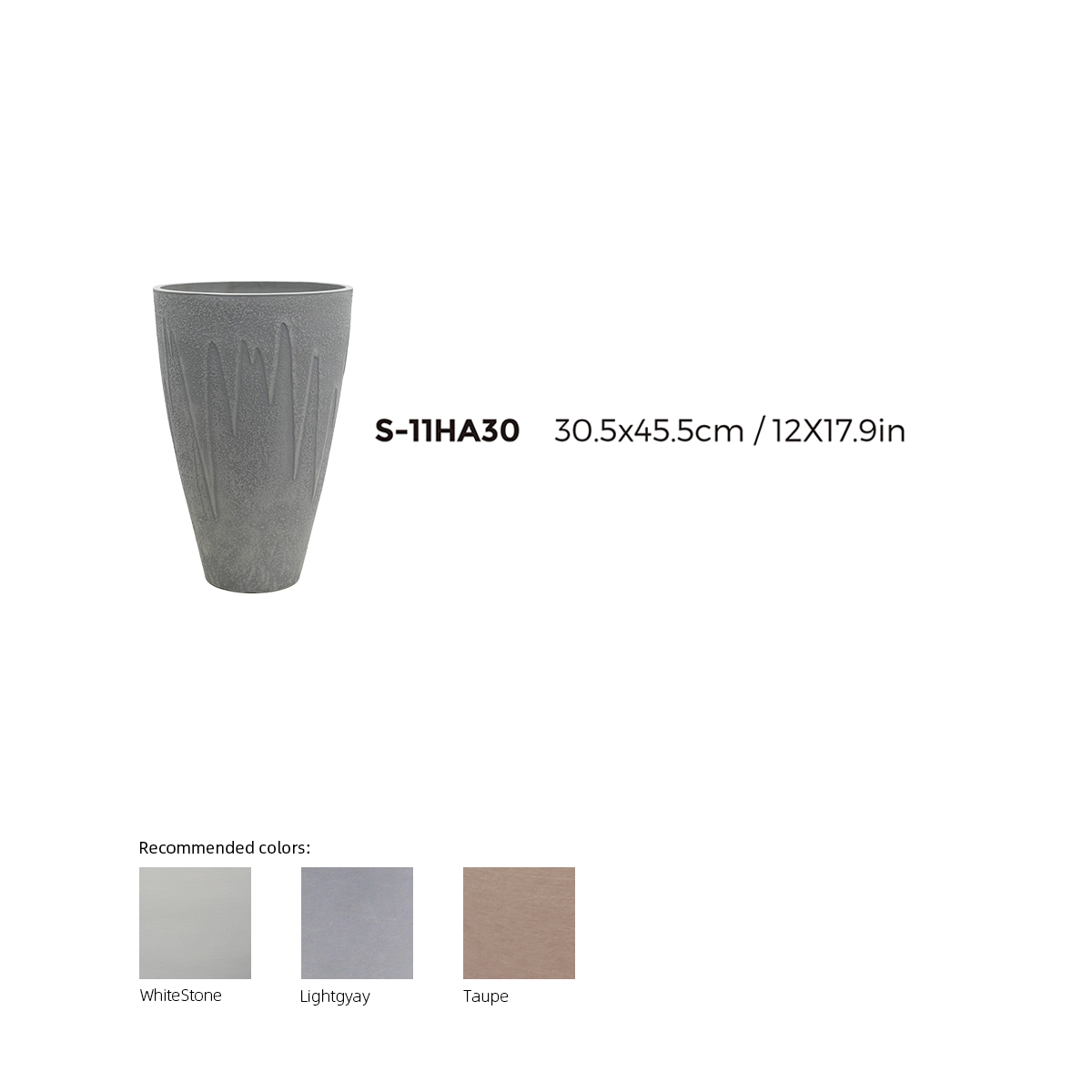 1. World quality manufacturer of flower pot with 30 years experience in production and R & D 2. Two manufacturing facilities, two research institutes and one marketing center 3. 130 patents with 9 world’s only invention patents 4. Our production Line of 3D Printers and mould workshop can meet custom needs 5. Our Composite patented material is eco-friendly, non-toxic 6. naturally looking,sturdy,durable and with a life span up to 20years 7. aging-resistant,anti-UV and weather-resistant 8. Breathable, good for plant growth 9. A rich variety of styles and colors with over 100 new items per year