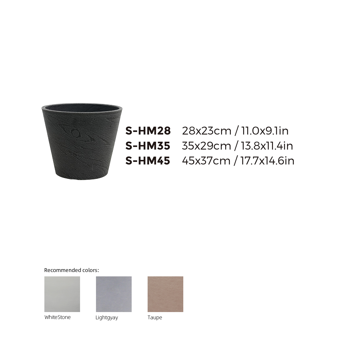1. World quality manufacturer of flower pot with 30 years experience in production and R & D 2. Two manufacturing facilities, two research institutes and one marketing center 3. 130 patents with 9 world’s only invention patents 4. Our production Line of 3D Printers and mould workshop can meet custom needs 5. Our Composite patented material is eco-friendly, non-toxic 6. naturally looking,sturdy,durable and with a life span up to 20years 7. aging-resistant,anti-UV and weather-resistant 8. Breathable, good for plant growth 9. A rich variety of styles and colors with over 100 new items per year