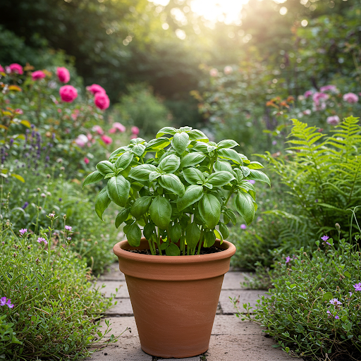 Suitable Pot Types: Basil grows well in various types of containers, including terracotta, plastic, ceramic, and fabric pots. Terracotta pots are beneficial for drainage and aeration, while plastic pots retain moisture well. Fabric pots are also excellent for drainage and root health.