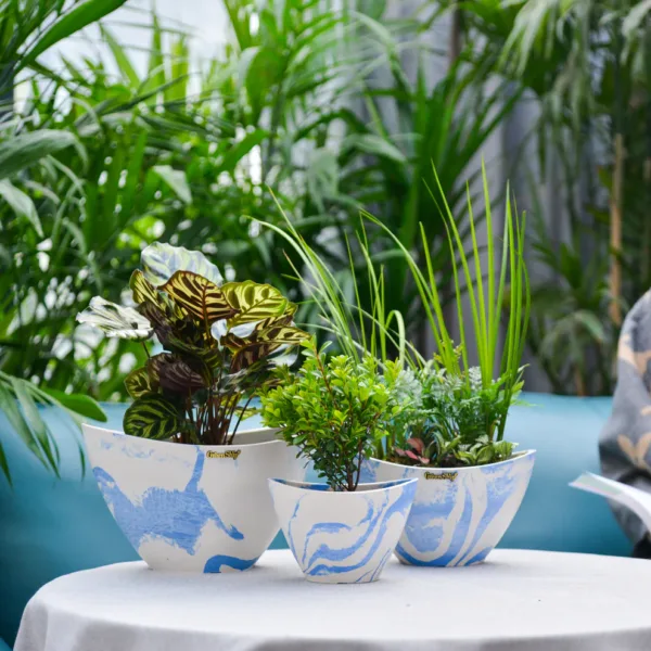 The planters are made from a unique blend of recycled resin and clay powder, combining durability with eco-friendliness. This means they are sturdy and weather-resistant, making them ideal for both indoor and outdoor use.