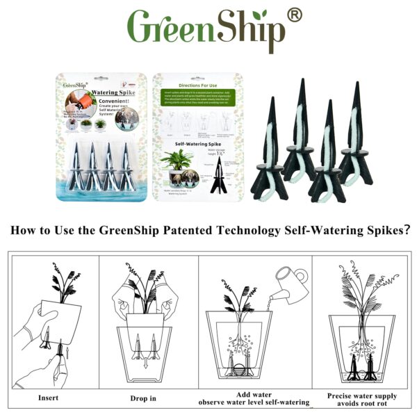 1.Self-Watering Pots: The Ultimate Solution GreenShip’s Self-Watering Planters are the most reliable and effective way to ensure your plants stay hydrated during your vacation. Each pot is equipped with newly patented self-watering spikes that slowly release water into the soil as needed, keeping your plants moist for weeks.