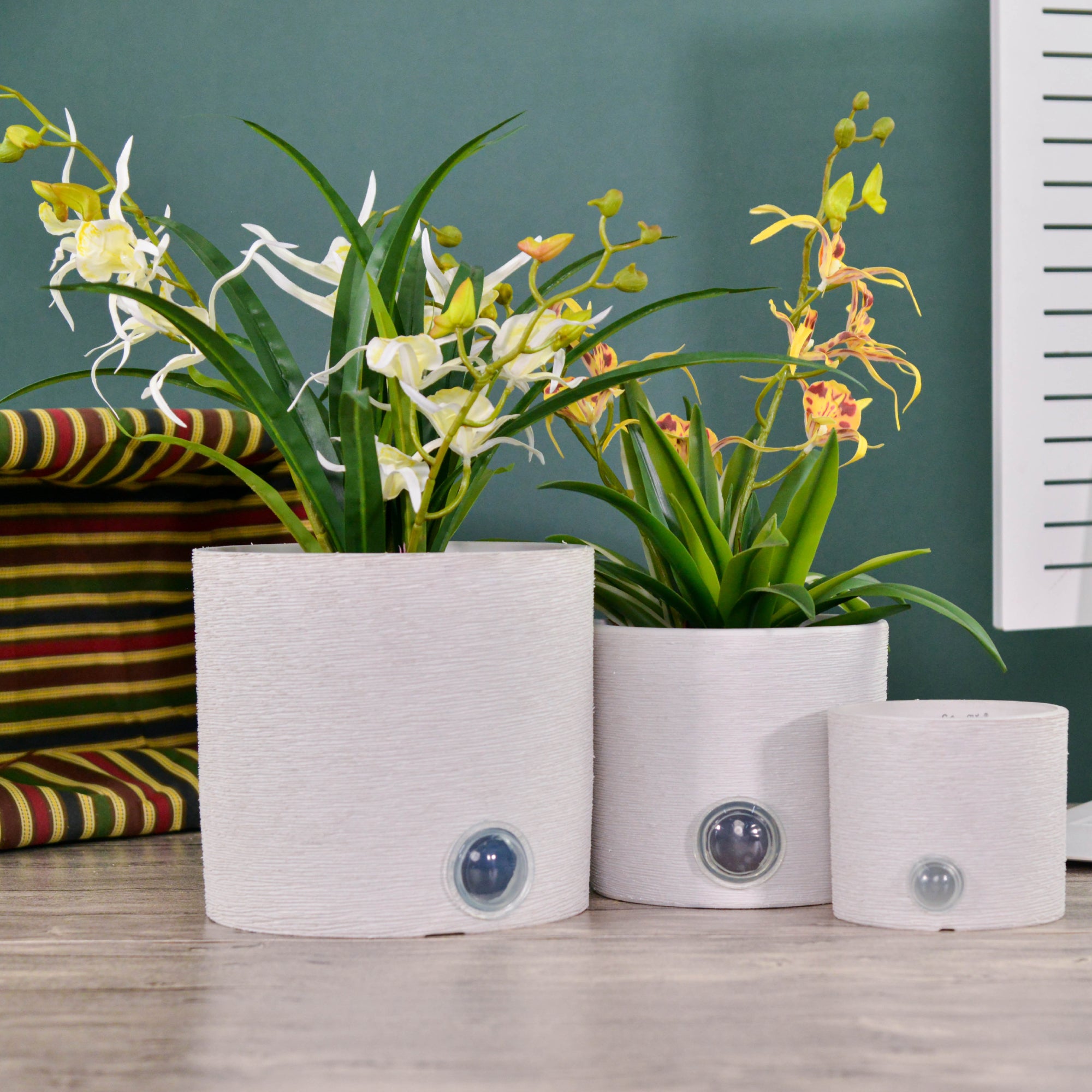 The planters come in a stylish Speckle WhiteStone color, adding a touch of elegance to any space, whether it’s your home or office. The modern design blends seamlessly with various decor styles, making these planters not only functional but also visually appealing.