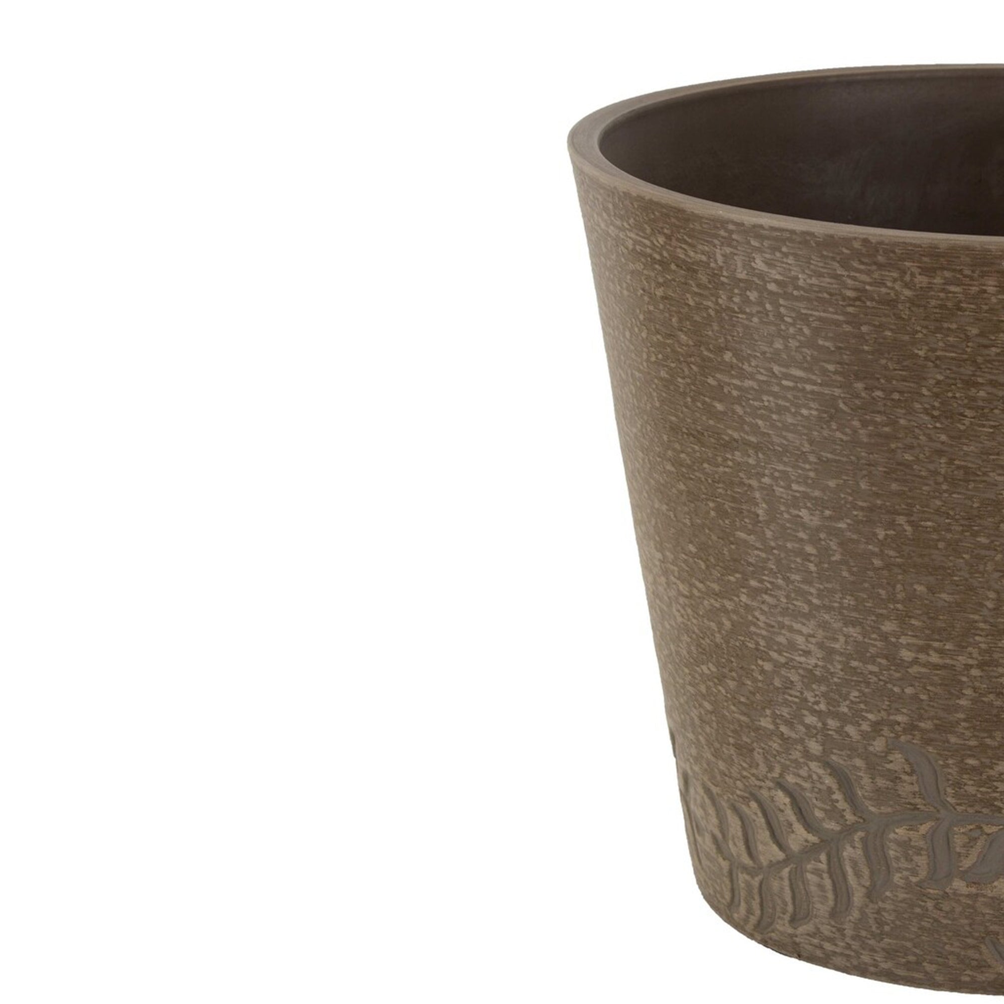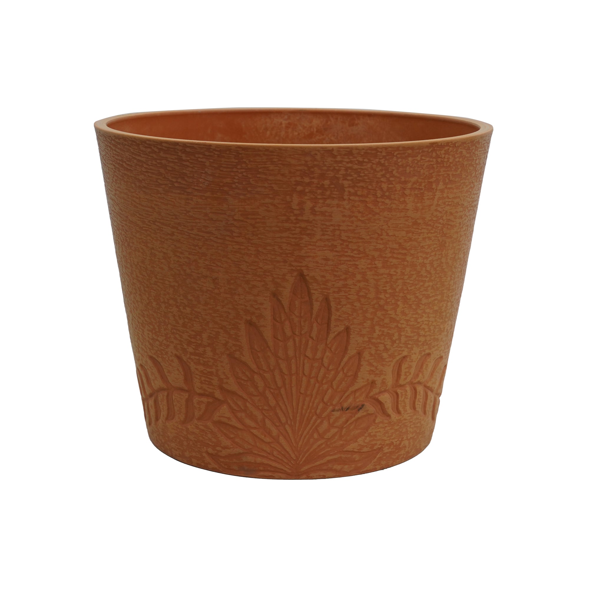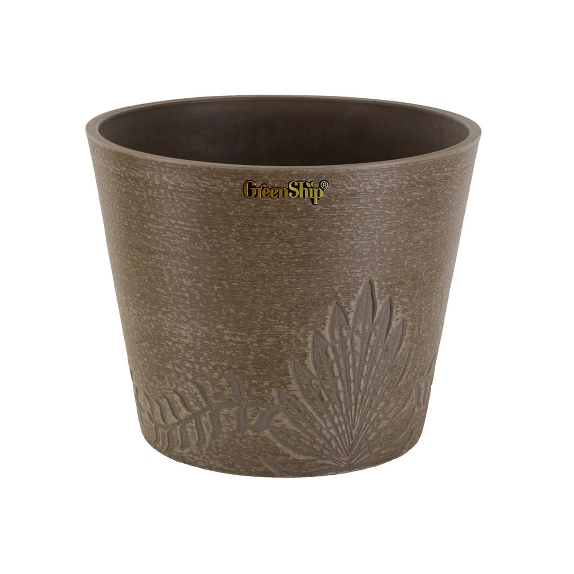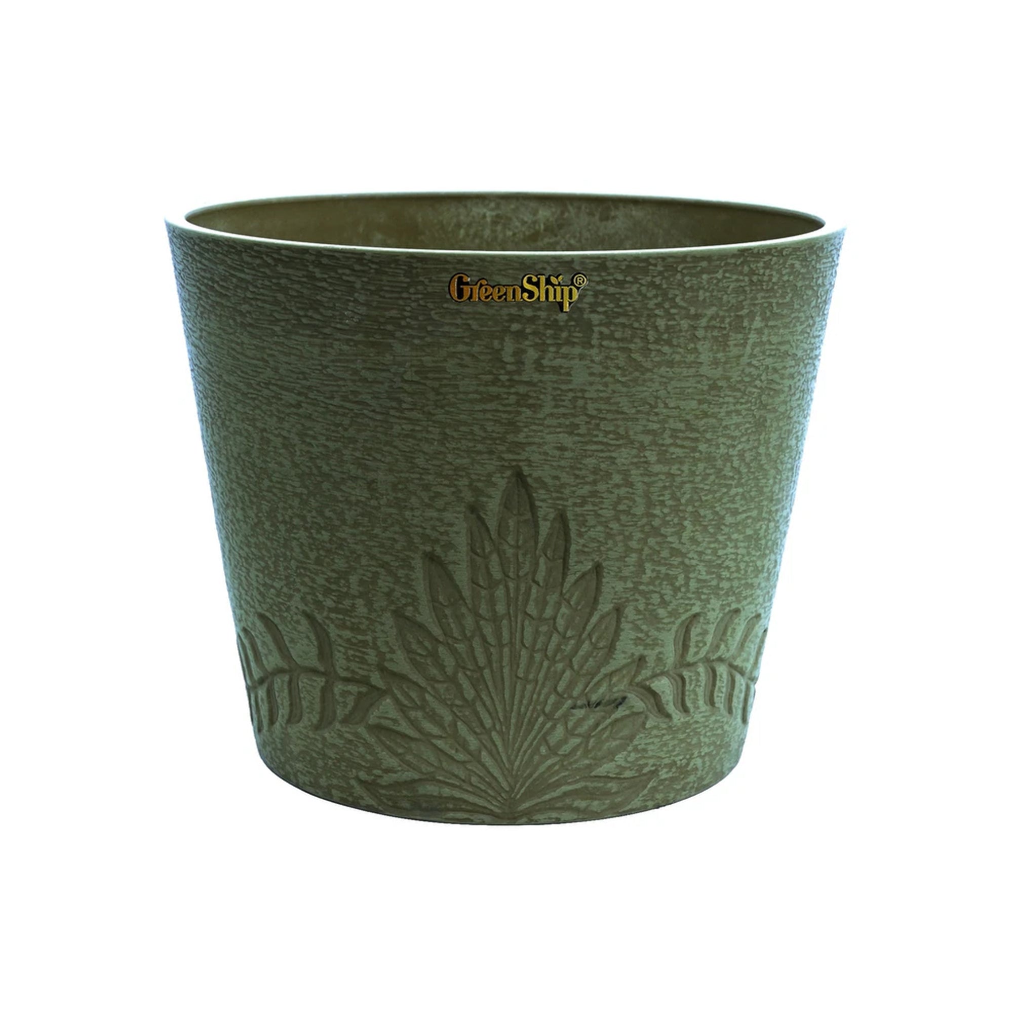 The GreenShip resin decorative planter is made from a unique blend of clay and 100% recycled resin, offering exceptional durability and break resistance for all weather conditions. Its UV color-fast formula ensures that it won’t fade in sunlight, unlike traditional pots. Designed with a palm and vine embossed pattern, this planter serves as a beautiful accent for plants both indoors and outdoors. Equipped with a drainage hole for proper water flow, it promotes healthy plant growth while adding a stylish touch to any space. Perfect for enhancing your home, garden, or patio decor.