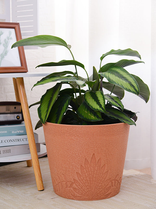 Use for: Palm and vine embossed design planter that is a great accent for plants indoors or outdoors.