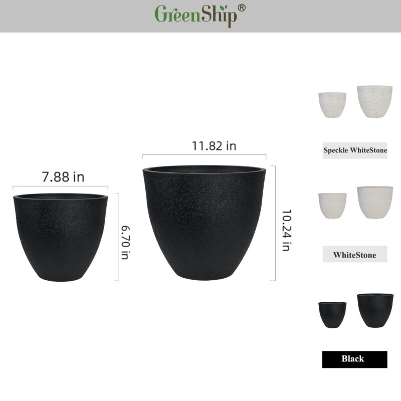 Sturdy & Unique Flowerpots: GreenShip flowerpots are made from a unique blend of recycled resin and clay powder, ensuring they are durable and not easily breakable. Perfect for plant enthusiasts who value sustainability. Available in 2 sizes: 8 inch and 12 inch.