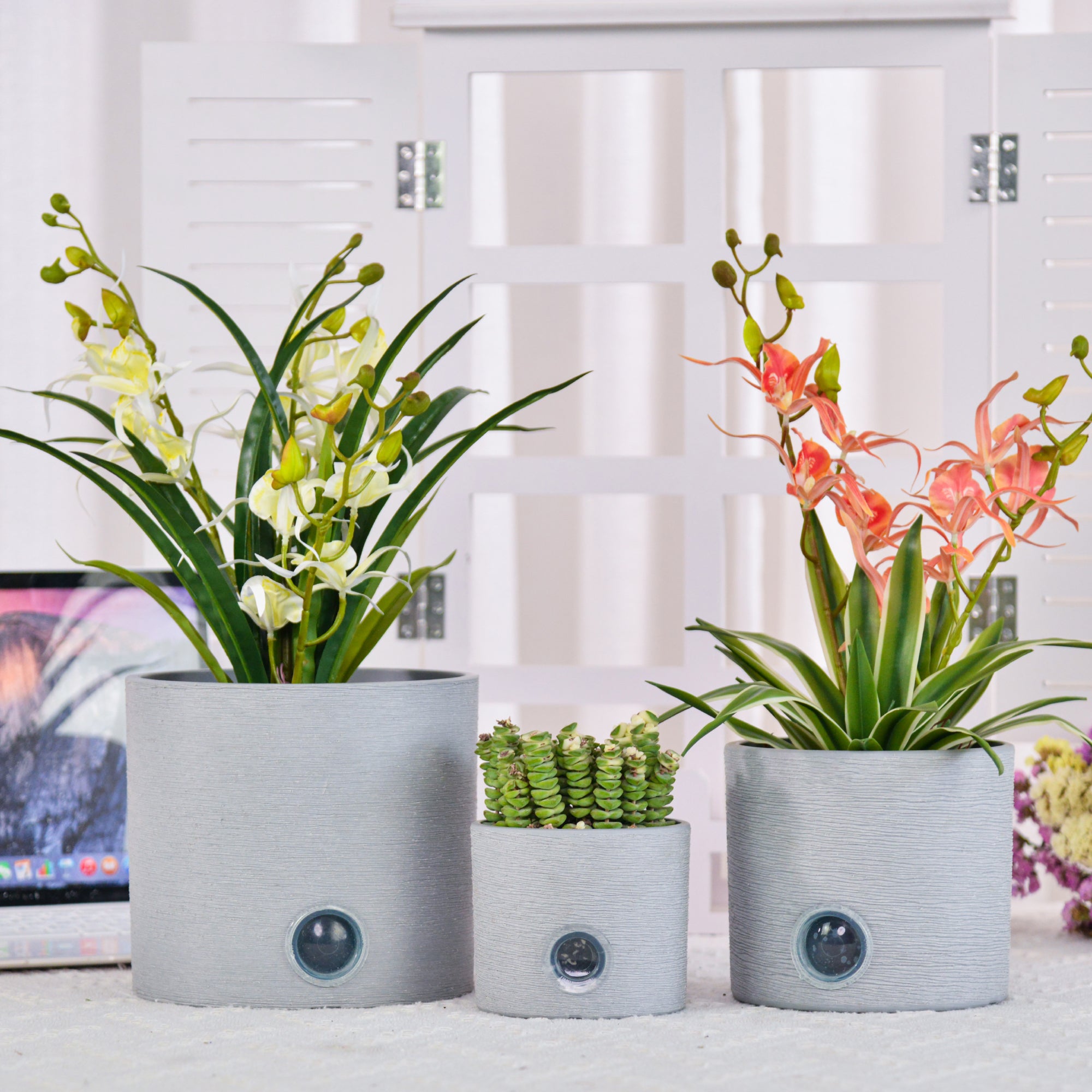 Product kit includes: 3 planters (5“+ 6 “+ 8”) and patented self-watering system kit ONLY